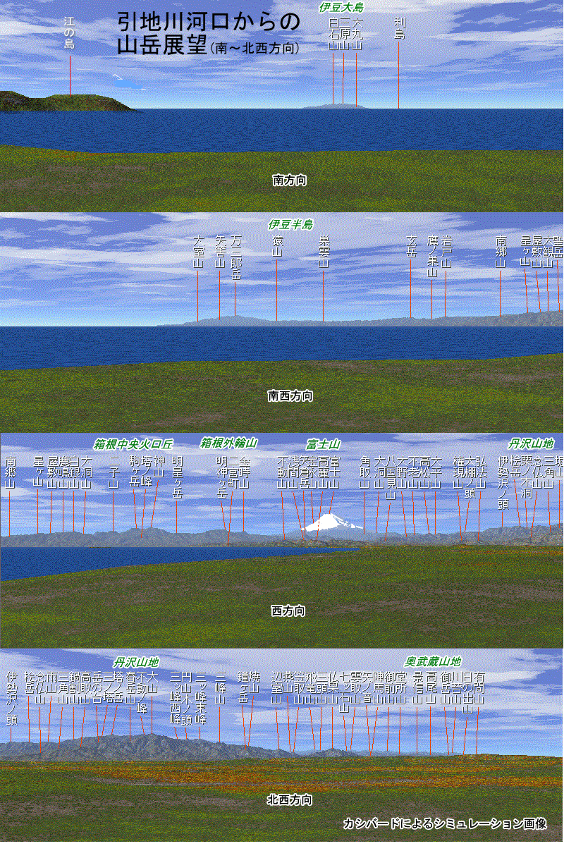 その西端に当たる引地川河口からの山岳展望のシミュレーション画像を制作してみた。