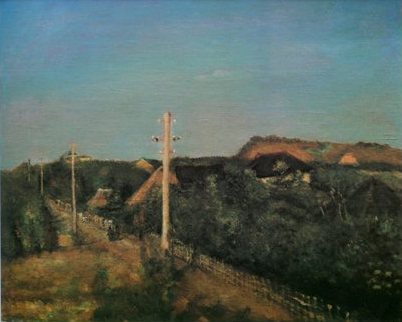 「今日は、前の道を土方が来てひろげてゐる。自働車が通る様にするのだと云ふが馬越さんのところの角でまがるまいと思ふがどんなものか、そんな事で景色がかわるのを心配したいがいざ描かうとてみたところこれは又案外で大へん美くしくかつちりとした風景になつた。何が仕あわせかしれない。(中略)いゝモテイフになつた。又新らしくこの道を主としたものをはじめてみたい気もした。」