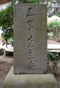 万福寺境内の参道左手墓地に、阿部松翁の墓と阿部石年の小さい墓碑が並んでいる。 阿部松翁 阿部松翁は本名を阿部松村といい、1817(文化14)年没している。阿部松村は藤澤宿の儒者で文化人。万福寺を拠点に開かれていた俳諧の集い「鵠沼連」(後述)の師匠だったらしい。 墓石は極めて小さく、正面には「松翁先生墓」、右面には「文化十四」とあるのみの簡素なものだが、「先生墓」とあるからには、一種の筆子塚と考えることができるだろう。 市教委の編纂した「藤沢市教育史」史料編には「筆子塚銘文」の一例として紹介されている。 もう一つは吉成弥四郎を師匠とするもので、場所は不明である。吉成弥四郎は1833(天保 4)年8月22日に死去し、それによって廃業した。 初め藤澤宿の常光寺に葬られたが、この墓は後に万福寺に移されたという。 阿部石年 阿部石年は阿部松村の子息で、去道(元道)、宝所、無尽老人などと号し、書家として知られていた。東海道各宿駅における文化人の人名録『東海道人物志』には、医学・詩・文の項目に安倍元道の名で紹介され、藤沢宿において活躍した文化人である。また、『東都日暮里本行寺物見塚記』には相模の俳人7人の名が紹介されており、鴫立庵の庵主を務めた葛三や雉啄と並び石年の名も紹介されている。石年の句は『卯の花くもり』『頓写のあと』『鴫の井』『豆から日記』『的申集』などの句集に寄せられており、これらの俳諧書は鴫立庵系の俳人が多く、石年も鴫立庵系と考えられている。 1835(天保6)年3月14日に68歳で歿し、はじめ藤澤宿の常光寺に葬られたが、後に万福寺に移された。石年が書いた碑や掛物は藤沢市内で多く見ることができる。 例えば、江の島の江島神社中津宮参道にある「猿田彦大神」碑の筆跡が阿部石年のものとされる。この碑に書かれている「猿田彦大神」とは、記紀神話の神で、天孫「ににぎのみこと」降臨の際、高千穂までの道案内を務めた神といわれ、中世以降、「庚申信仰」や「道祖神信仰」と習合した。