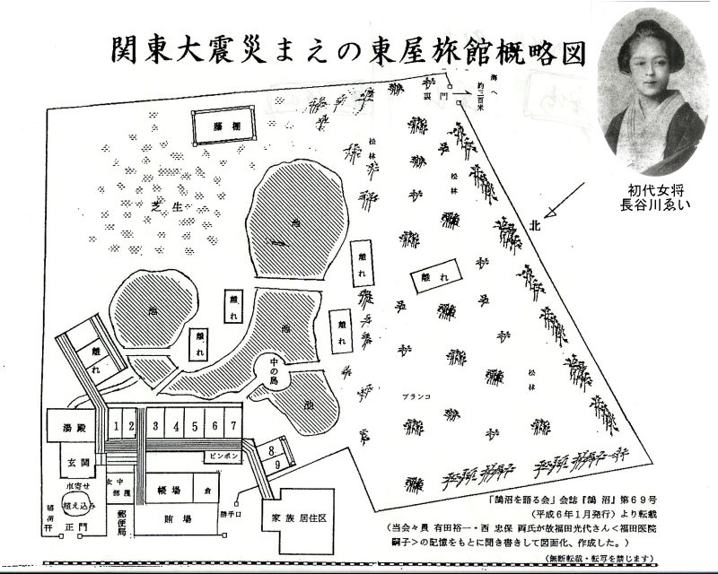 東屋初代女将第0132話に記したように、伊東將行は1892(明治25)年にそれまで勤めていた「鵠沼館」に加えて一旅館「東家」を創業した。この段階では旅館というよりも貸別荘だったという。1897(明治30)年頃、將行は神楽坂箪笥町の名料亭=《吉熊》の女中頭をしていた長谷川 榮(ゑい)という女性をスカウトしてきて旅館東屋の女将に据える。 《吉熊》には多くの文士、特に尾崎紅葉率いる「硯友社」の面々や近くにあった物理学校(現東京理科大)の教授や学生がよく用いたらしい。そこで立ち働く女中頭のゑいは、才色兼備でなかなかの人気者だったという。 ここでゑいの実家=長谷川家について触れておこう。両親の元金沢藩士といわれる長谷川重守・きよ夫妻は、明治時代には東京・牛込に住んでいた。夫妻には男1人、女6人、計7人の子があったが、長女は夭折した。弟妹の面倒を見る実質上長女の役割を果たした二女=たか(1866-1938)は、極めてしっかりものであったという数々のエピソードが残っている。 たかは東京の芝で糸組み物を商っていた杉村清吉(1855-1916)と結婚し、間に一人息子の龍三が誕生するのは、妹のゑいが鵠沼に移った1897(明治30)の7月9日のことであった。この龍三が日本画家の長谷川路可となるのである。路可については別項を立てる。龍三が小学校3年生のとき両親は離婚し、龍三は母=たかが引き取ることになったため、長谷川姓を名乗り、長谷川龍三となった。これと相前後して長谷川家は東京を引き払い、たかと共に東屋の周辺に移り住んだ模様で、本籍を鵠沼村に移されている。 三女が東屋初代女将の長谷川ゑいである。ゑいの次に生まれたのが長谷川家唯一の男性である嫡男=繁蔵である。繁蔵とその妻=タケとの間に、一人息子の欽一が生まれたが、幼少時に父=繁蔵が他界し、母もその前後に長谷川家を去っている。欽一は直ちに家督を相続し、後見人には伊東將行が就いたが、働き者と伝えられている祖母=きよも健在で、長谷川家が結束して欽一を育てることになった。 その頃、伊東將行が招聘した埼玉県吹上出身の医師=福田良平を院長に《鵠沼海濱病院》が東屋に隣接して開設される。後に福田良平は長谷川家の四女=蝶と結婚した。二人の間には子が生まれなかったので、姪の光代を養子にする。 蝶の下には、そのと寿々という二人の妹があった。寿々は後藤 栄という後に長谷川欽一の後見人となる人物と結婚する。 「文士宿」東屋の出発第0132話に記したように、東屋は廃業の際に宿帳を初めあらゆる資料や什器備品類は処分されたため、どういう文士がいつからいつまで滞在したのか、明確な記録がない。これまで判明した文士の記録は、小山文雄氏の永年にわたる調査に負うところが多い。膨大な各種文学作品の中から、あるいは文士たちが交わした書簡の中から東屋に関するものを抜き出し、整理したものである。従って、実際にはその数倍の文士が宿泊したと思われる。残念ながら不明な部分が多いのである。それによれば、東屋に滞在したことが最初に判る文士は小説家=広津柳浪(1861-1928)で、1897(明治30)年秋に東屋に滞在し、小説『くされ縁』を執筆している。 広津柳浪は「硯友社」の有力なメンバーだったので、当時片瀬に居を構えていた「硯友社」の江見水蔭宅に立ち寄り、水蔭・川上眉山と親交を結んだ。この時仲間にゑいが鵠沼にいることを伝えたのではあるまいか。後に1908(明治41)年5月23日、文学結社=硯友社一行(思案、眉山、桂舟、龜石、小波、程山、風谷、柳浪といふ顔觸)は、東屋へ「旅行会」を行っている。 いずれにせよ、ゑいが女将に就任したことによって「文士宿」東屋が発展したことは間違いない。 「文士宿」東屋の発展については、文化史のジャンルで別項を立てる。. ところで、全くの余談だが、先年「明治郷土史料室」のオープンに際し、「耕余塾」の資料を見せて頂いた際に、歴代塾生名簿の中に「鵠沼・長谷川栄」とあるのを見つけた。男性か女性かは判らないが、あるいは……。 ![]() | ||||||
