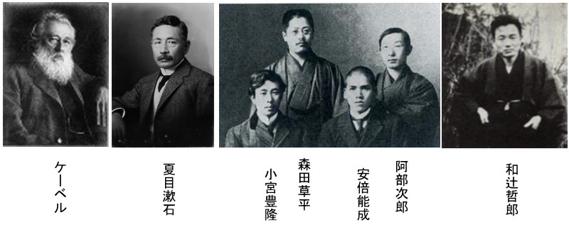 大正教養主義ラファエル・フォン・ケーベル(Raphael von Koeber, 1848年1月15日 - 1923年6月14日)は、ロシア出身の哲学者・音楽家。夏目漱石も講義を受けており、後年に随筆『ケーベル先生』を著している。1893(明治26)年6月に日本へ渡り、同年から1914(大正3)年まで21年間帝國大學に在職し、イマヌエル・カントなどのドイツ哲学を中心に、哲学史、ギリシア哲学など西洋古典学も教えた。美学・美術史も、ケーベルが初めて講義を行った。また、東京音樂學校(現東京藝術大学)ではピアノも教えていた。 ケーベルとその弟子たちは一般的には、大正教養主義をもたらしたと考えられている。しかし、大正教養主義という『主義』がこの時期に運動として起こったのではない。これは後年、唐木順三によって名づけられたものである(『近代日本思想史の基礎知識』)。 例の会ケーベルの弟子たちで、夏目漱石に私淑していた若者のうち、鵠沼に関わりのあるのは次のメンバーである。