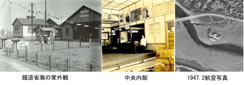 いずれにせよ鐵道省東京鐵道局は藤澤町の意を受けて、鵠沼海の家を1931(昭和6)年7月10日に起工し、同月27日に完工。8月1日には開業しているから、驚くべき超スピードといわざるを得ない。 鐵道省海の家「海の家」といっても、それまでのような葦簀張りや、今日のような夏2か月間の仮設建築ではなく、営業期間は夏だけだが、建物は恒久的な建築として建てられた。位置は、現在の県立湘南海岸公園《ちびっこ広場》あたりで、建築時点ではまだ《湘南遊歩道路》も着工直前だったし、引地川の河川改修も始まったばかりだった。引地川は砂浜に出てから東へ流れ、第0297話で紹介した『大藤澤復興市街圖』によれば、東仲通りを海に出た付近に河口があり、河口の両側に海水浴場があった。《海の家》は当初左岸に建てられた。《海の家》の北側には第0303話で紹介した堀川(古川)が流れており、《海の家》に向けて《片帆橋》が架けられていた。この橋は元来欄干もないいわゆる「ドンドン橋」だったが、《海の家》建設に際して欄干付きの恐らく自動車も渡れるようなものに架け替えられたのではなかろうか。 設計図等は見たことがないが、戦後駐留軍が撮影した航空写真によれば、かなりの面積を持ったE字型の平面形を持つ母屋にT字型のテラスが附属した本格的木造建築で、大きな切り妻型の屋根(多分トタン葺き)に覆われていた。《片帆橋》を渡ったエントランス左手には、小さい別棟の入場券売り場が建てられていた。 外観の写真は何枚か残っているが、内部の写真は少ない。その少ない内部写真によれば、入口は土間で簀の子が敷いてあり、床はかなり高い板張りで、敷物が敷き詰められている。天井高は2間以上とかなり高く、格天井になっている。壁面には観光ポスターなどが貼られているのが、いかにも鐵道省施設らしい。 外観の写真を見ると、電気が引かれていて、2本の高い煙突が立っている。脱衣場の他に浴室と食堂があったという。 何枚かの従業員集合写真が残っているが、従業員数は30名程度、看護婦も常駐していたという。写真の中央には必ず藤沢駅長が写っており、駅長が所長を兼ねていたと思われる。 この施設が閉鎖(休業?)したのは1938(昭和13)年説と1939(昭和14)年説とがある。1938(昭和13)年には引地川右岸に開設されたとある。これは建て替えたのではなく、この年の7月2日に起きた梅雨明けの大豪雨(別項を立てる予定)により、引地川下流部の流路が大幅に変わり、いままで左岸にあった《海の家》が右岸側になってしまったと考えられる。 1947(昭和22)年2月に駐留軍が撮影した航空写真には左岸側に戻っている。この建物は閉鎖後も取り壊されずに存在したわけで、1949(昭和24)年8月31日にキティ台風の高潮によって流失した。 このように、《海の家》の営業期間は数年と短かったわけだが、この間、世の中は世界恐慌から日中戦争へと進む暗い時代に向かっていた。しかし、鵠沼海岸に関していえば、《湘南遊歩道路》の開通、《町営プール》の開設が行われ、鵠沼海岸駅前商店街は《鵠沼銀座通り》と呼ばれるほどの賑わいを見せた。リゾート地鵠沼のつかの間の「黄金時代」だったのではあるまいか。 ![]() | ||
